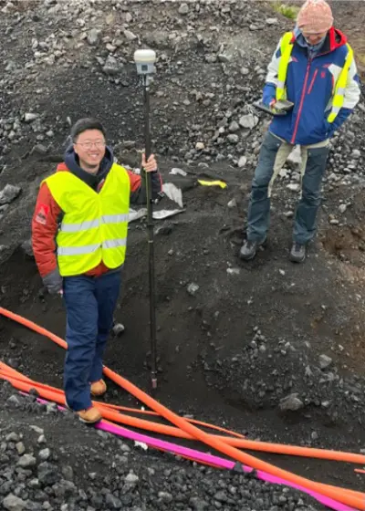 This approach is already bearing valuable fruit, as demonstrated in a 2025 paper titled “Minute-scale dynamics of recurrent dike intrusions in Iceland with fiber-optic geodesy.” (Participating institutions include CENIC members Caltech—with members of the Zhan Group shown in Iceland at right—and the Jet Propulsion Laboratory, the University of Iceland at Reykjavik, the University of Houston, Google, and others.)