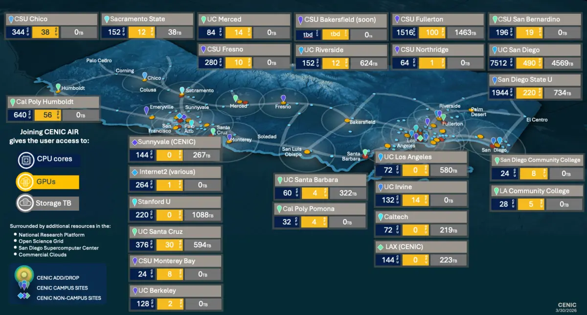 “Essentially, CENIC AIR enables California’s colleges to own their AI infrastructure, with CENIC doing the network planning, engineering, and coordination activities, including critical security functions,” said Wuerthwein. “This means that colleges aggregate the obstacles while retaining ownership of their infrastructure so they can bring digital assets to all classrooms.”