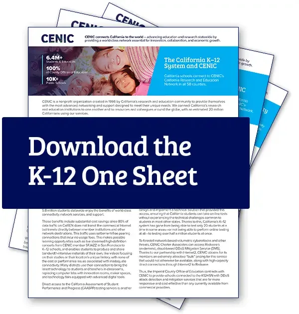 School districts and education departments throughout California partner with CENIC to deliver fast, reliable, and secure services to schools and students.