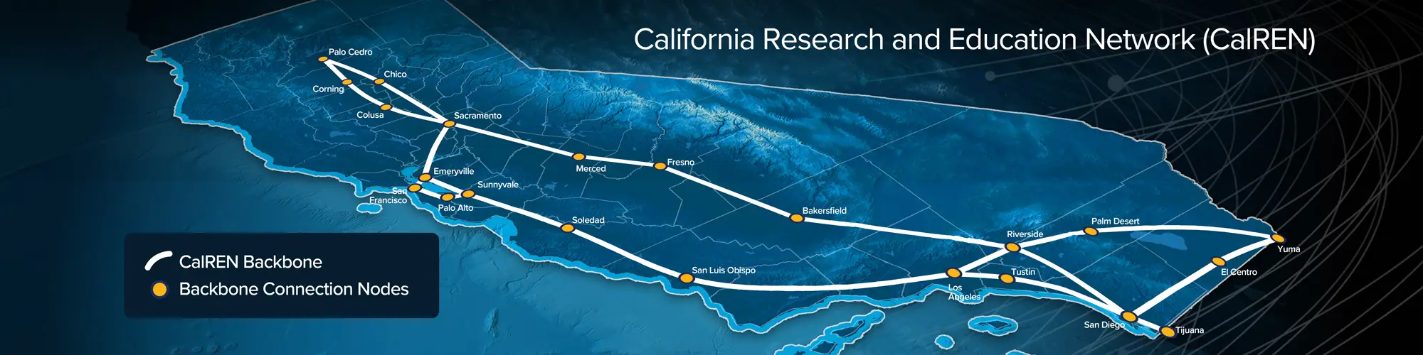 CENIC's California Research and Education Network (CalREN) is a multi-tiered, advanced network-services fabric serving the majority of research and education institutions in the state. The CalREN backbone includes roughly 8,000 miles of CENIC-owned and managed fiber, last-mile fiber, and hundreds of optical components.