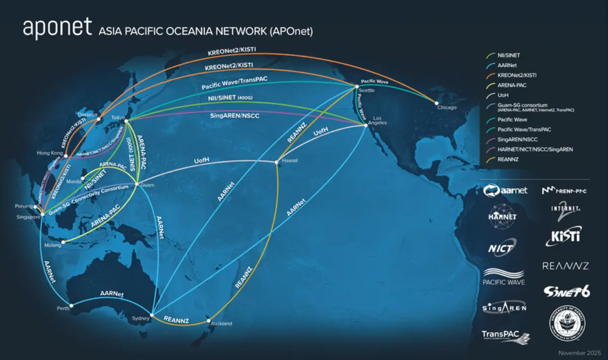 Under President Emeritus David Lassner, along with Garret Yoshimi and Chris Zane, UH’s leadership in international networking stretches back over 35 years. In 1989, UH’s partnership with NASA enabled the first international Internet connection to Australia, linking the University of Melbourne to the global research network via Hawai’i—a foundational moment that established the pattern of trans-Pacific collaboration that continues today. Through the Pacific Communications Network (PACCOM) project in the late 1980s and early 1990s, UH was instrumental in establishing the first academic and research Internet connections to New Zealand, Australia, Japan, Korea, and Hong Kong.