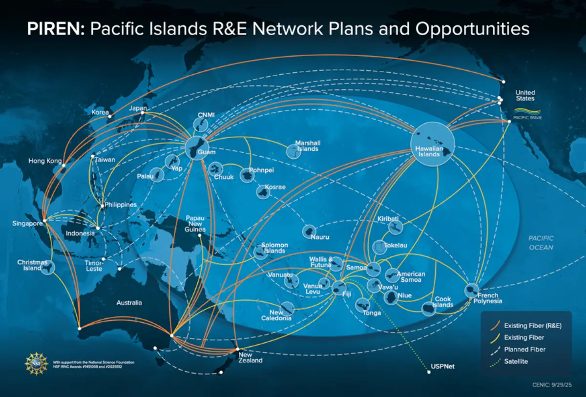Beyond the technical achievements, the UH team’s work reflects deep personal commitments to the Pacific Islands and their communities. The islands scattered across Oceania, on the front lines of climate change and rising sea levels, and long underserved by telecommunications, represent the intersection of a technical challenge with the team’s personal missions. Their vision for PIREN has always been about more than bandwidth; it’s about ensuring that island communities have the same access to global research and education resources as their mainland counterparts. Also it is no coincidence that David Lassner has sailed aboard Hōkūleʻa’s Worldwide Voyage; like the traditional navigators who connected Pacific peoples across vast ocean distances using stars and currents, he has worked to connect them through fiber and light, ensuring that these remote island communities are not left beyond the reach of the global research and education network. In 2016, Lassner said, “To me, that’s what the World Wide Voyage and mālama honua stand for—sustainability, indigenous serving, education, research and our service to the community. So I ask, ‘Why wouldn’t we be involved?’ It’s an incredible opportunity to do exactly what the University of Hawaiʻi is supposed to be doing.”